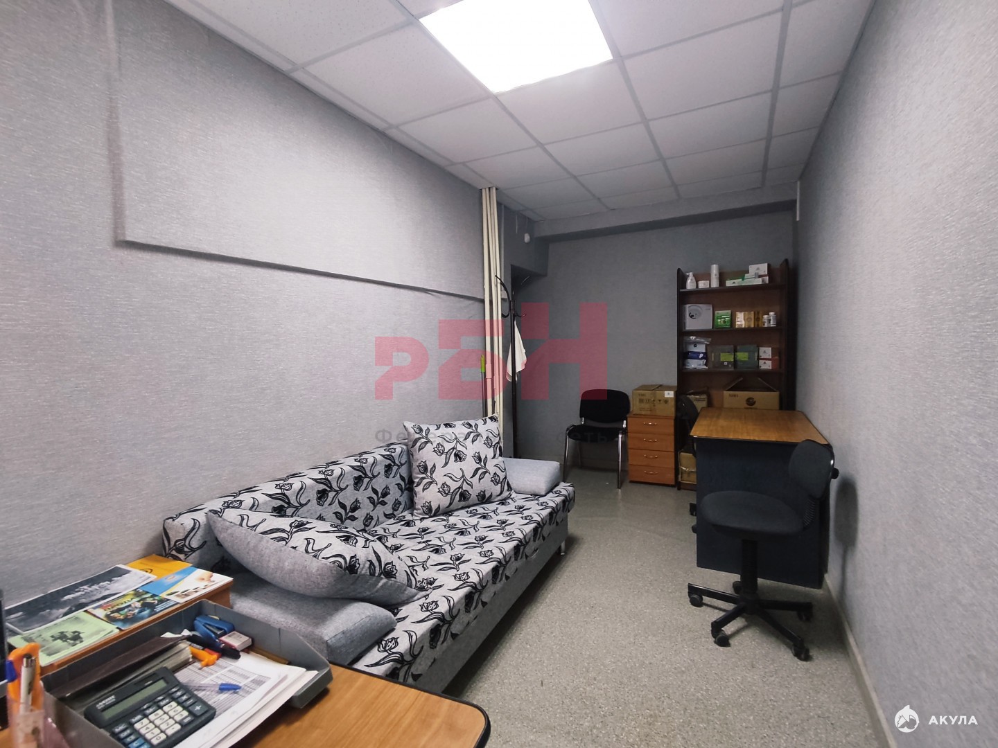- пол линолеум, потолки армстронг, стены -обои ;