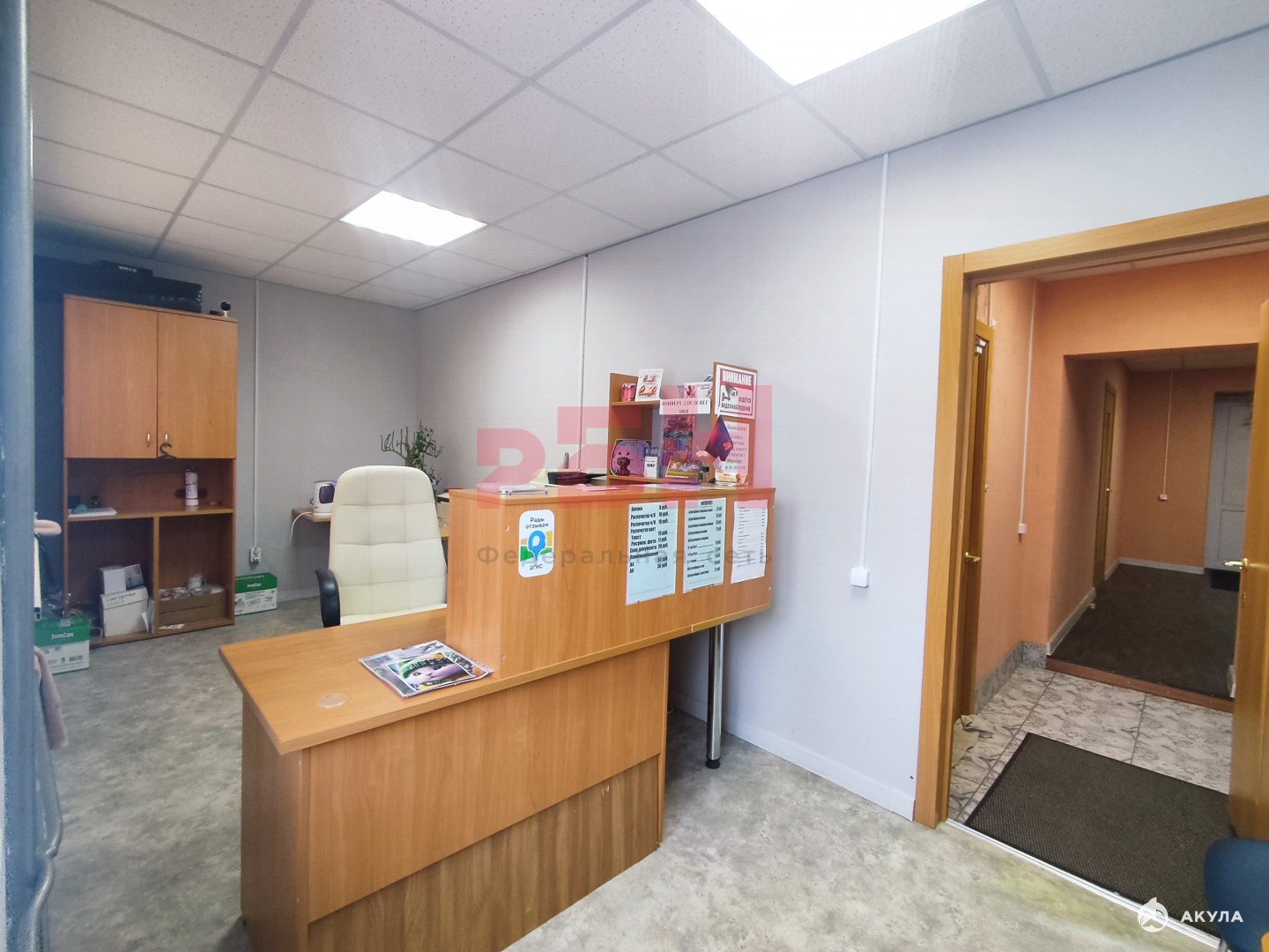 - пол линолеум, потолки армстронг, стены под окраску ;