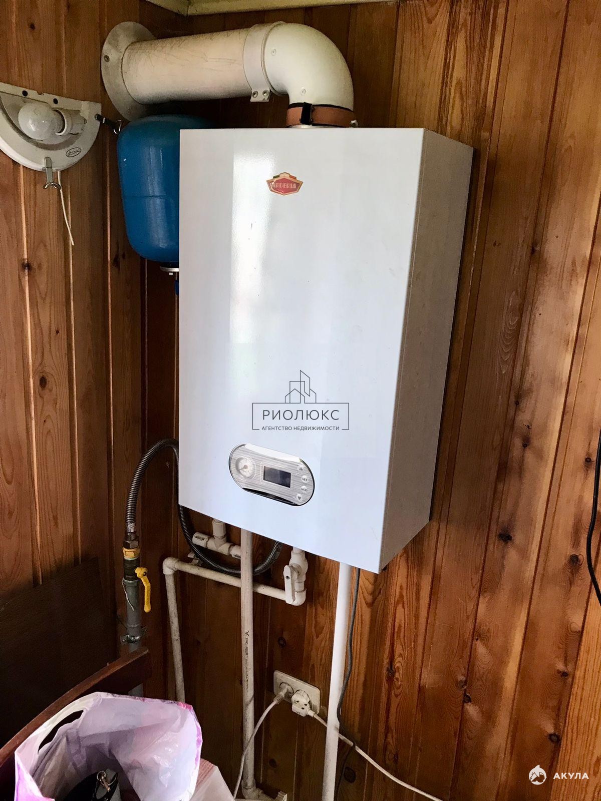 На участке есть скважина, вода заведена в дом. Проведён газ, смонтировано газовое отопление, но при этом в доме сохранилась печь — для тех, кто любит настоящий русский уют. Кроме того, на участке расположены баня, бак с будкой для хранения инструментов и поликарбонатная теплица.
