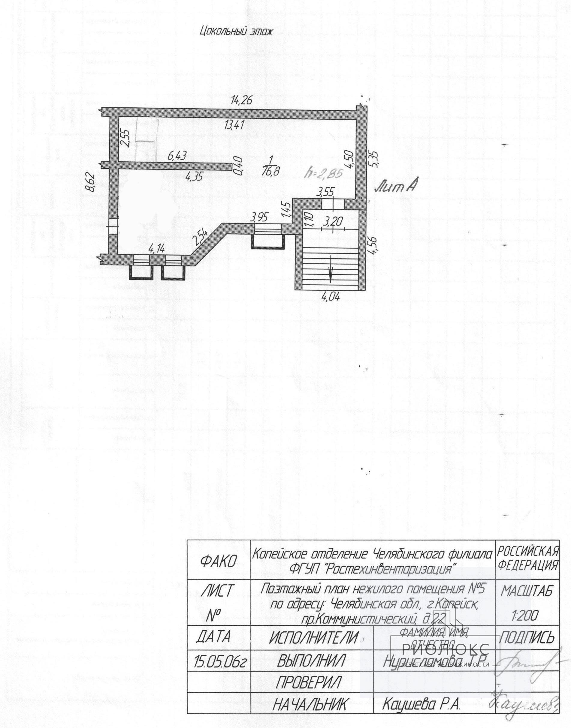 Высота потолка – 2, 85м