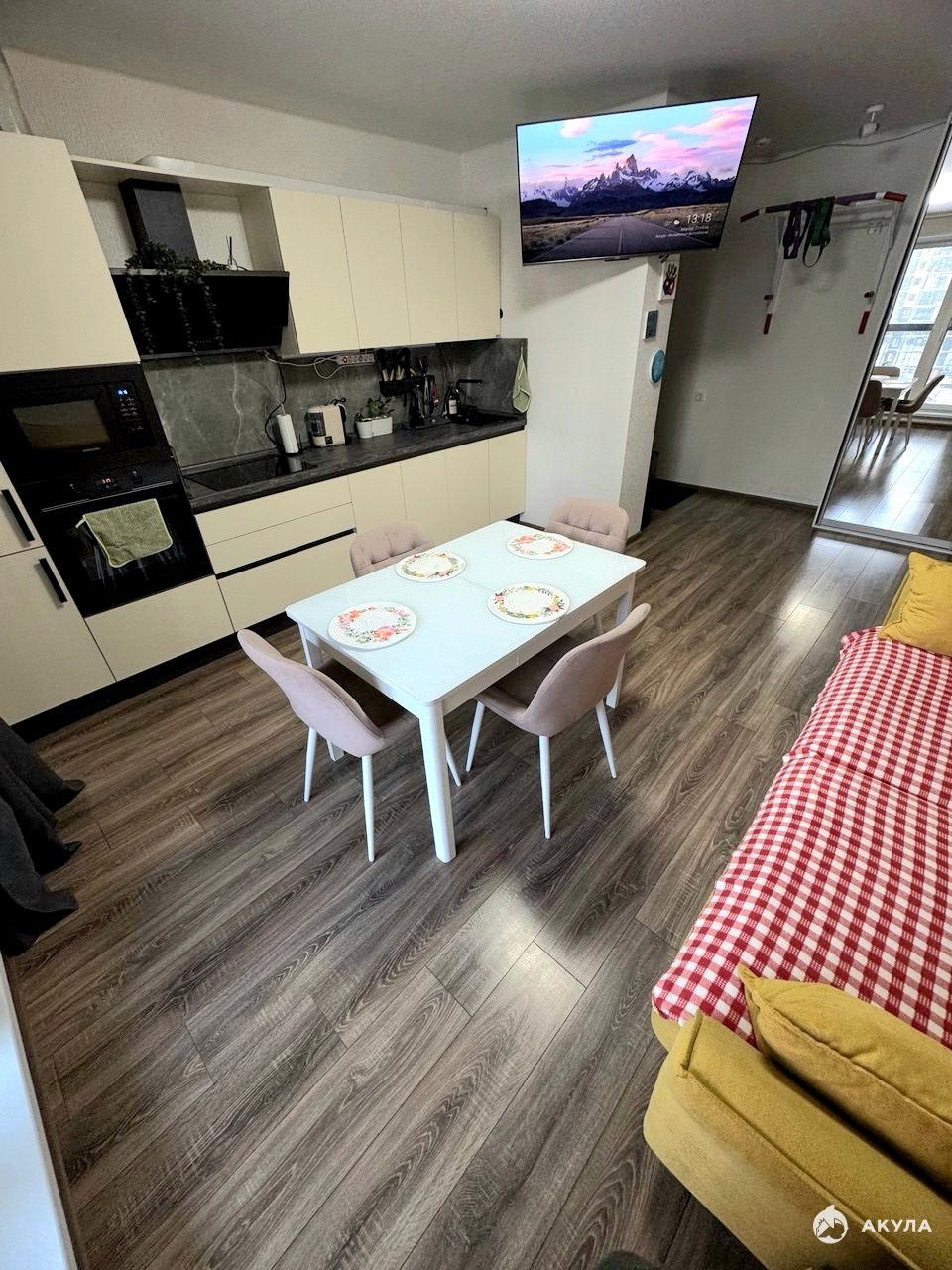 В подарок остается кухонный гарнитур, холодильник, посудомоечная машина, стиральная машина, диван, шкаф в гостиной