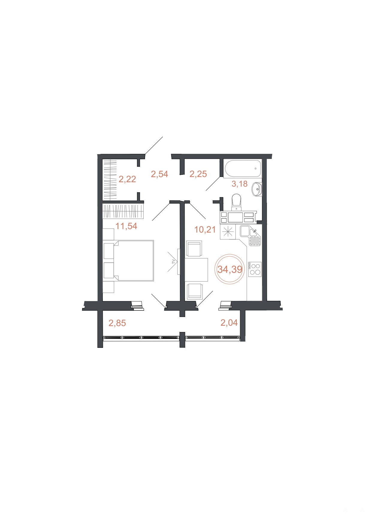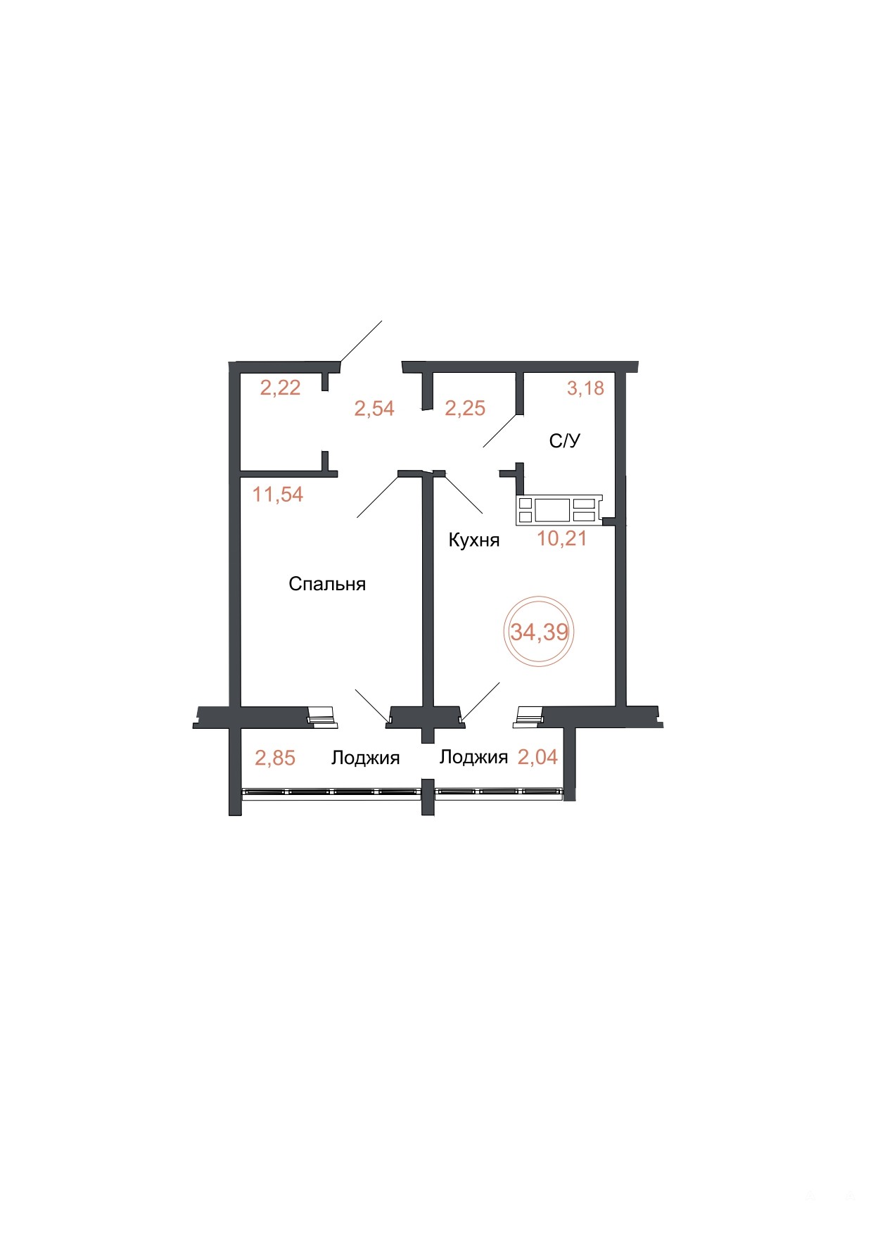 - 34 м²