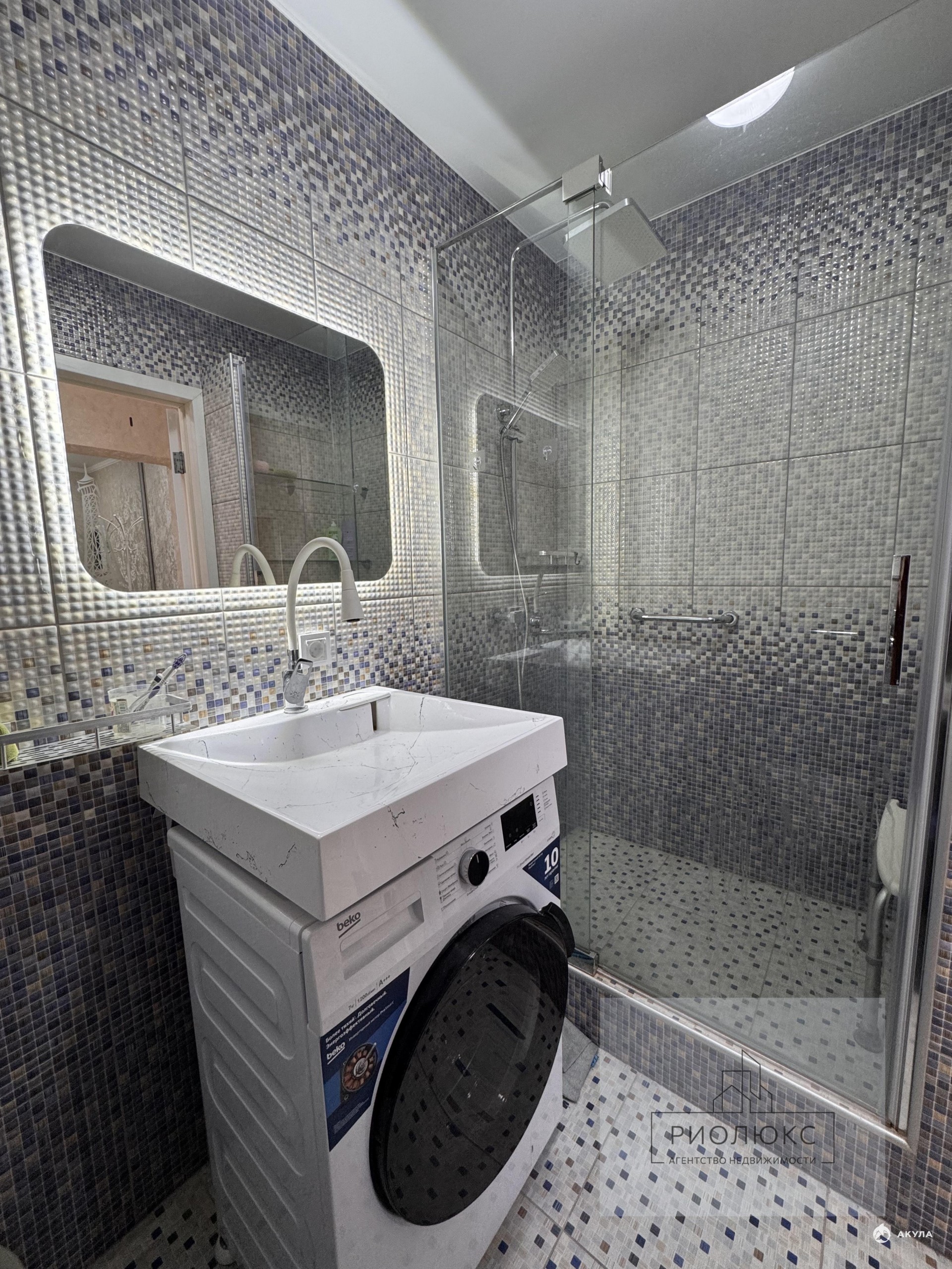 Световой сценарий. Натяжные потолки + встроенные диоды. Нет тусклой лампочки на проводе — есть ровный, мягкий свет. Ванна? Нет — спа-зона. Вместо тесной чугунной ванны — душевая с тропическим душем. Полы не зальете, шампуни не падают.