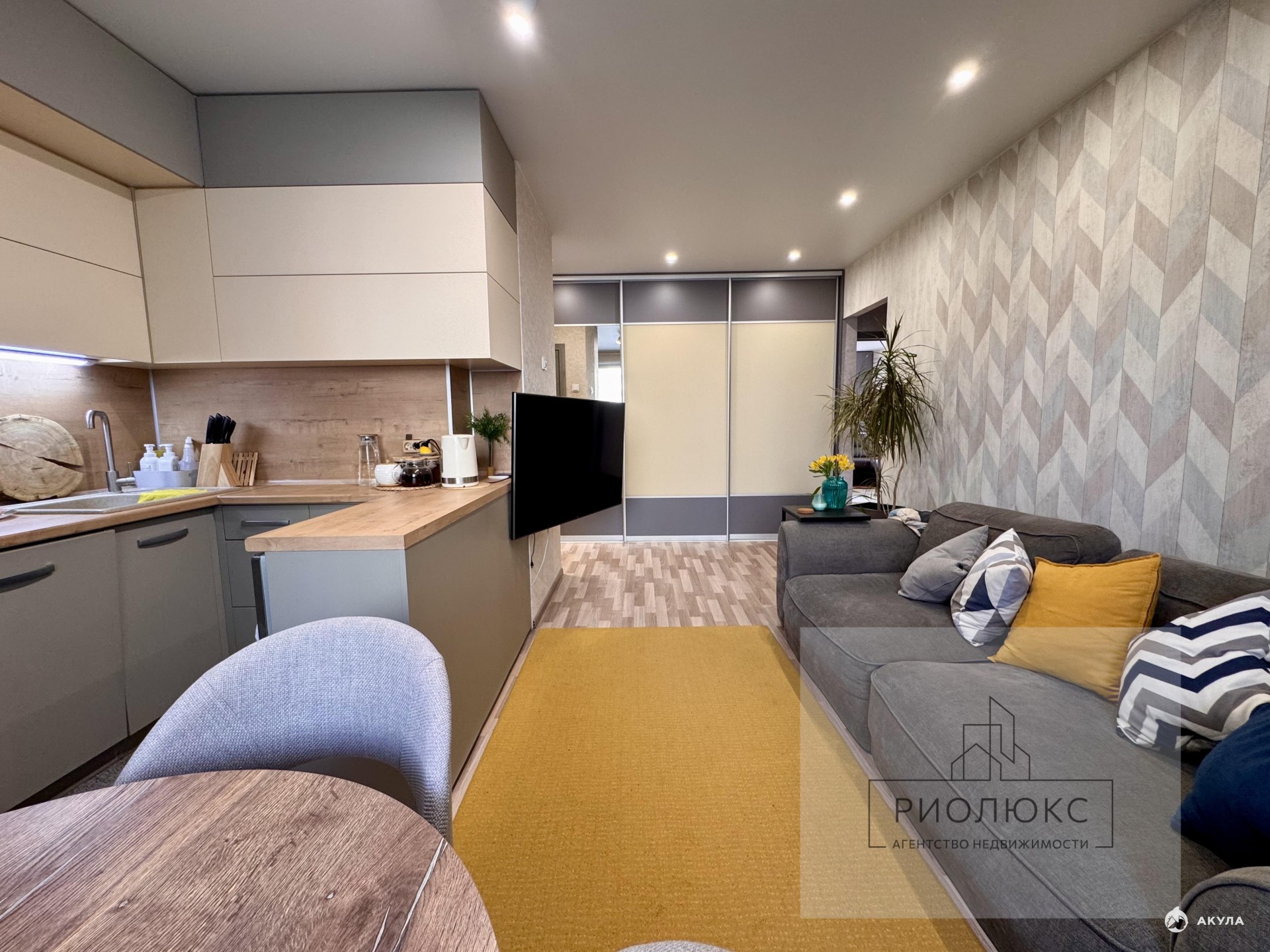 Встроенная кухня продумана до мелочей: все под рукой, никаких лишних трат. Встроенные шкафы в коридоре и спальне вместят все необходимое.