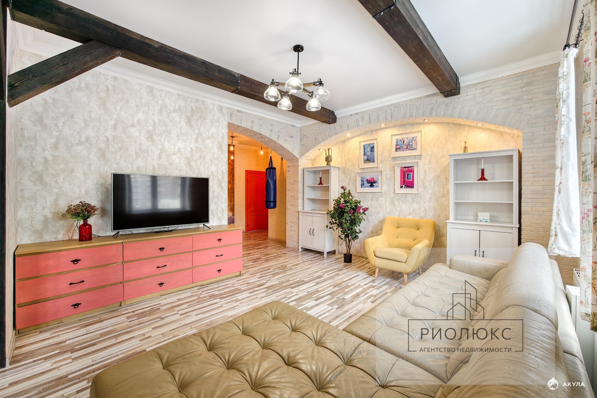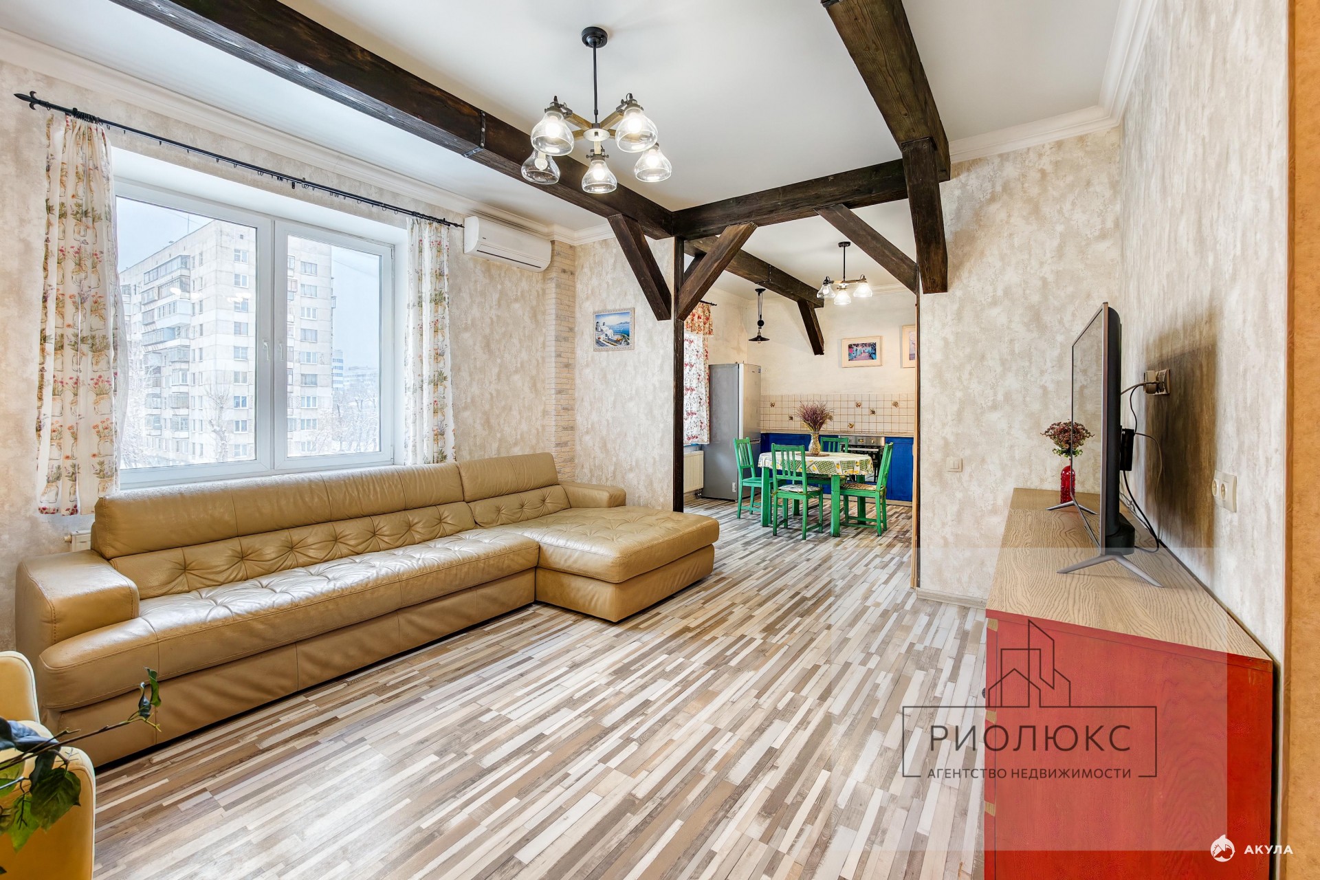 Качественный ремонт по принципу «заезжай и живи». Сделан немецкий ламинат, дизайнерская штукатурка, два санузла отделаны качественной плиткой, 2-х уровневые потолки с деревянными балками.