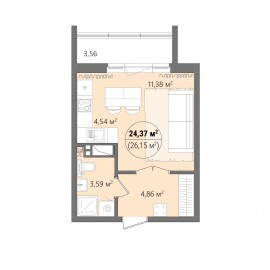 Арт. 119673658 Предлагаем квартиру-студию современного планировочного решения в Академ Риверсайд, ул. Университетская Набережная, 46. Общая площадь квартиры без учета балкона 28, 2 кв.м.В квартире грамотная планировка жилого пространства: просторная комната правильной формы,...